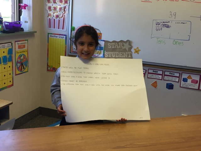 UOI with language focus- Today we completed the post assessment for the Ontario Writing Assessment. Students were required to write a list of recess rules. Students reviewed the elements of list writing before we began.